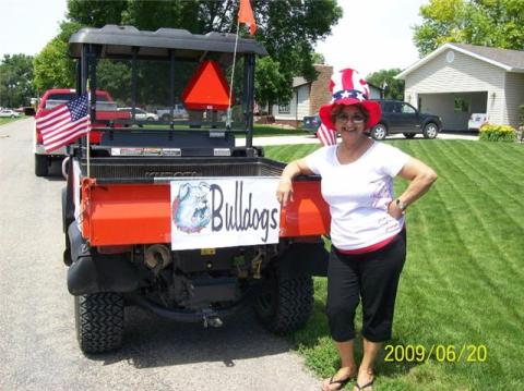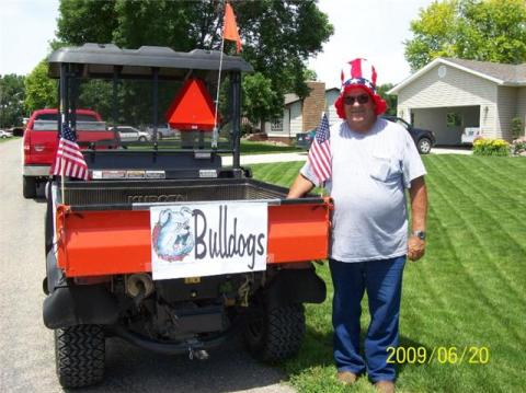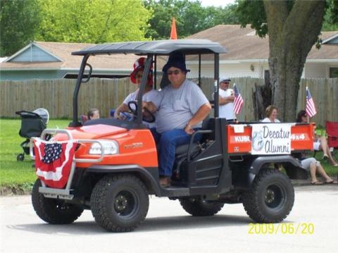 Pictures of Skinny (Bob Kellogg) and I (Sarah Shook) representing the Alumni/ Throwing Candy at the Riverfront Days Parade